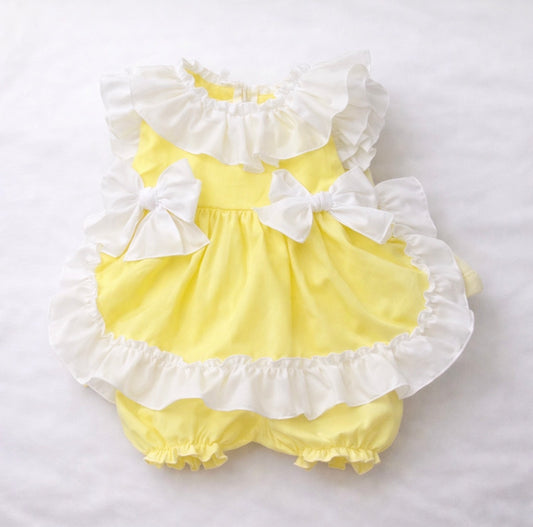 Lemon Fairytale Frill Bow Dress & Bloomers Set