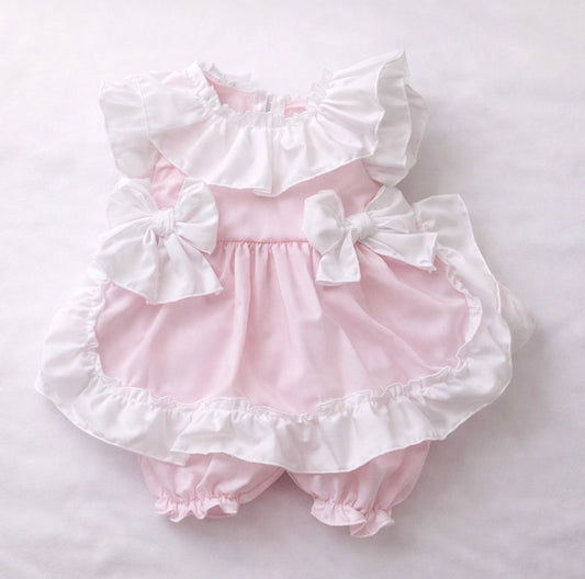 Pink Fairytale Frill Bow Dress & Bloomers Set