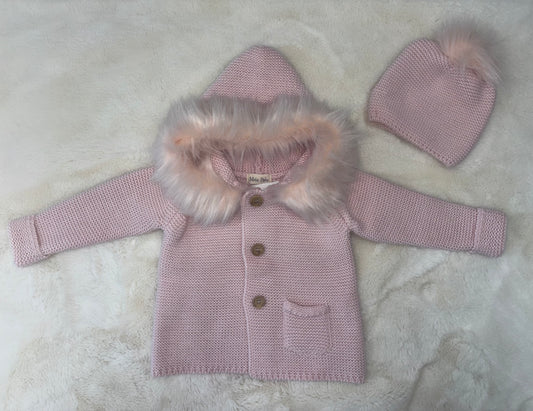Pretty Originals Pink & Cream Bow Smocked Traditional Style Coat & Hat