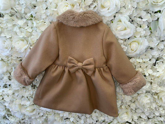 Little Nosh Camel Faux Fur Trim Coat